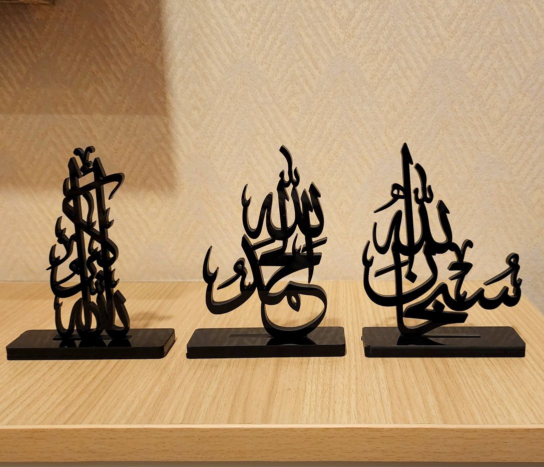 Mini Table Decor - Car Stand Islamic Art - Set of 3-SUBHANALLAH, ALHAMDULILLAH, ALLAHUAKBAR - Black