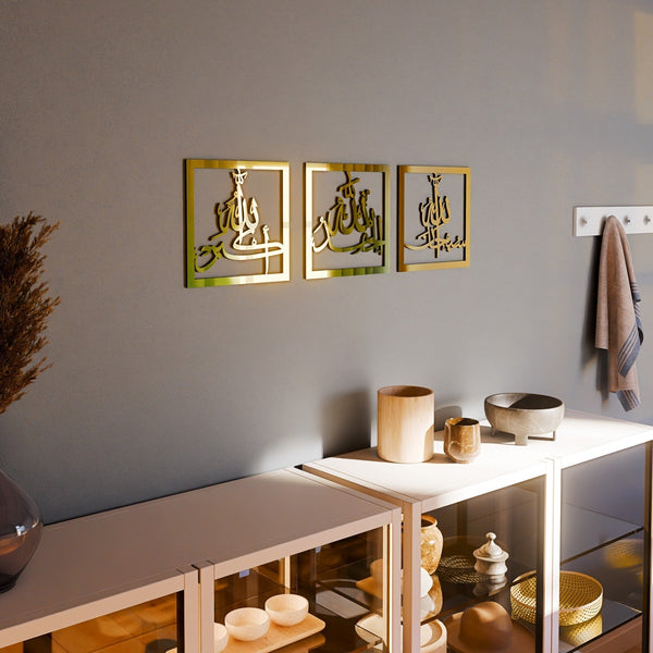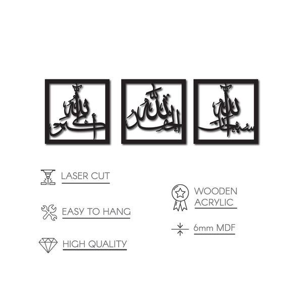 Subhanallah Alhamdulillah AllahuAkbar Acrylic Wooden Set Islamic Wall Art Decor