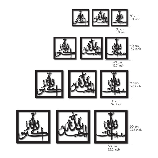 SubhanAllah, Alhamdulillah, Allahu Akbar Islamic Wall Art Measurements and Specifications: