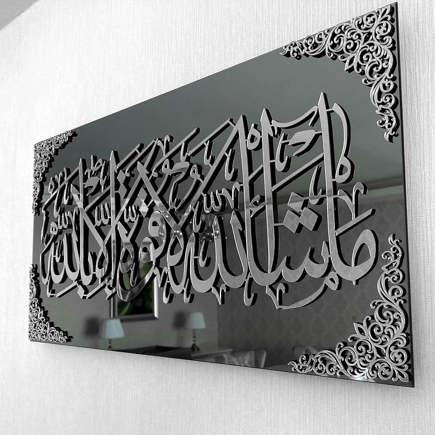 MashAllah La Quvvete illa Billah Black Acrylic Islamic Wall Art | Ramadan Decoration | Islamic Home Decor | Arabic Calligraphy | Muslim Gift (Gold/ sliver) 33 x 80 cm